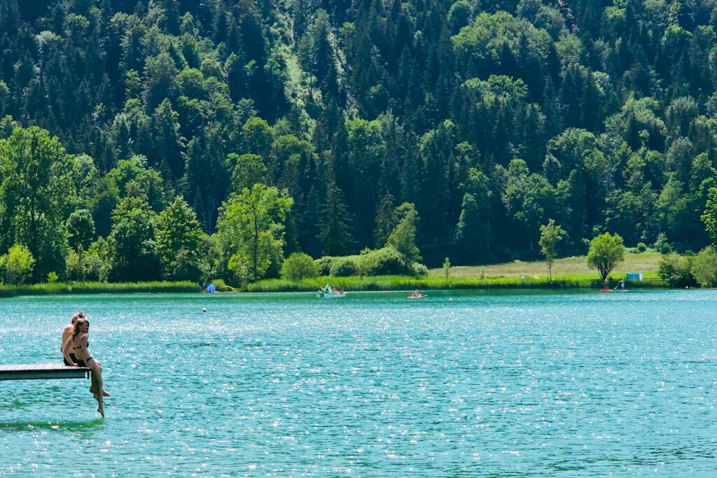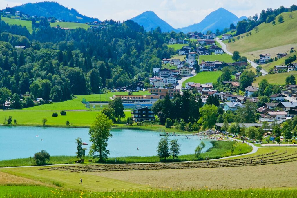 Επειδή όμως η ηρεμία και η ομορφιά πάντα επιδέχονται σύγκρισης, αφήσαμε το κοσμοπολίτικο Tengernsee για το πεντάμορφο τοπίο της λίμνης Thiersee στην πλευρά της Αυστρίας. Για ακόμα μία φορά περάσαμε τα σύνορα σε μία ρομαντική διαδρομή γεμάτη πράσινο, νερό, λιβάδια και ζώα, φτάνοντας στον λόφο με θέα όλο το καρτποσταλικό τοπίο και φωτογραφήσαμε την ειδυλλιακή αυτή περιοχή. Η ζεστή μέρα οδήγησε τα παιδιά σχεδόν απευθείας στα νερά της λίμνης, καθώς η δροσιά ήταν, τουλάχιστον, απαραίτητη…