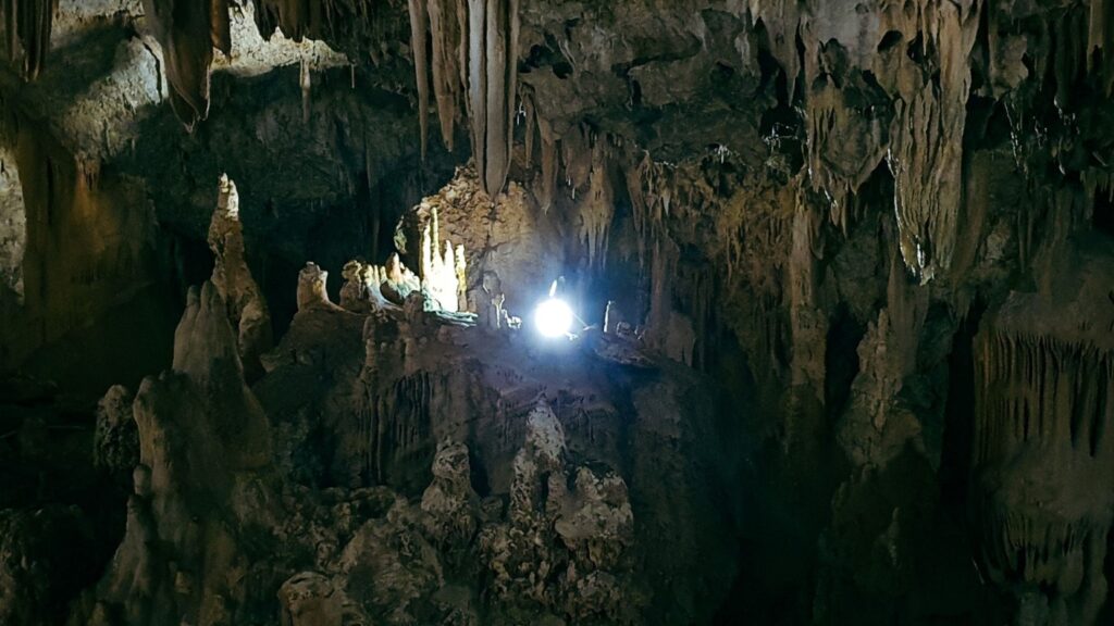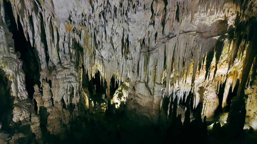 Με τον Λάκη να μας δίνει το «καλό κατευόδιο» για την πρώτη μας εξόρμηση πέριξ της πόλης, επισκεφθήκαμε στο Σπήλαιο του Περάματος. Έργο της φύσης, αποτελεί τμήμα κοίτης υπόγειου ποταμού, που διανοίχθηκε κατά την προτεταρτογενή εποχή, ηλικίας 1.500.000 χρόνων περίπου και απαριθμεί 19 είδη σταλακτιτών και σταλαγμιτών. Παλαιοί κάτοικοι των Ιωαννίνων, διηγούνται ότι η είσοδος του Σπηλαίου ήταν γνωστή πριν από το 1900 και ότι ο μπέης Χολιάσης Εφέντης την έκλεισε περί το 1907 για λόγους ασφαλείας. Από τότε όμως τίποτα δε θύμιζε την ύπαρξή του. Γνωστό έγινε κατά τον δεύτερο Παγκόσμιο Πόλεμο από κατοίκους του χωριού οι οποίοι κρύβονταν στα κοιλώματα του λόφου Γκορίτσα, για να προφυλαχθούν από τους βομβαρδισμούς των αεροπλάνων. Μετά τον πόλεμο, το 1951, περνώντας από εκεί τυχαία ο γεωλόγος-σπηλαιολόγος, Ιωάννης Πετρόχειλος έμαθε για την ύπαρξή του. Η τουριστική διαδρομή του, έχει μήκος 1.100 μέτρα και η έκταση που καλύπτει είναι 14.800 m2, ενώ η υψομετρική του διαφορά από την είσοδο έως την έξοδο είναι 25 μέτρα περίπου. Οι ξεναγοί του Σπηλαίου με τις περιγραφές και τις πληροφορίες τους, οδηγούν μεγάλους και παιδιά σε ένα ταξίδι στο μακρινό παρελθόν. Τα παιδιά ενθουσιάστηκαν από τους εντυπωσιακούς σχηματισμούς στην αίθουσα του «Σταυρού» με το σχήμα από έναν σταλακτίτη που έσπασε και ενώθηκε με έναν σταλαγμίτη, την αίθουσα των «οπωρολαχανικών» με τα πετρώματα να θυμίζουν μπρόκολα και κουνουπίδια και τις αίθουσες με τα ονόματα, όταν έβαλαν την φαντασία τους να δουλέψει για να τις ονοματίσουν!