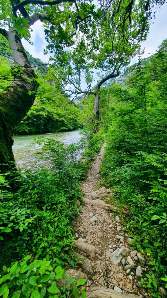 Το μονοπάτι, φαρδύ και ευδιάκριτο, μπαίνει σε ένα όμορφο πλατανόδασος. Σκαμμένο πάνω στην απότομη πλαγιά συνεχίζει παράλληλα με την ροή του ποταμού, περπατώντας κάτω από την παλιά Μονή των Αγίων Αναργύρων. Συνεχίσαμε την πεζοπορική μας διαδρομή μπροστά από την θέση “Κλείδι”, θαυμάζοντας τις πανέμορφες γαλαζοπράσινες βάθρες που σχηματίζει η κοίτη του Βοϊδομάτη. Στο τέλος της πορείας συναντάμε ένα σύγχρονο καλντερίμι που μας οδηγεί γρήγορα στο πέτρινο γεφύρι της Κλειδωνιάς, στην έξοδο του φαραγγιού. Επιστρέψαμε στο αυτοκίνητο και πήραμε τον δρόμο της επιστροφής με την σκέψη σε έναν τόπο γεμάτο μύθους και αλήθειες σε ένα ταξίδι όπου η μηχανή του χρόνου σε μεταφέρει σε διαφορετικές περιόδους, κρατώντας τα καλύτερα στοιχεία από την καθεμιά.